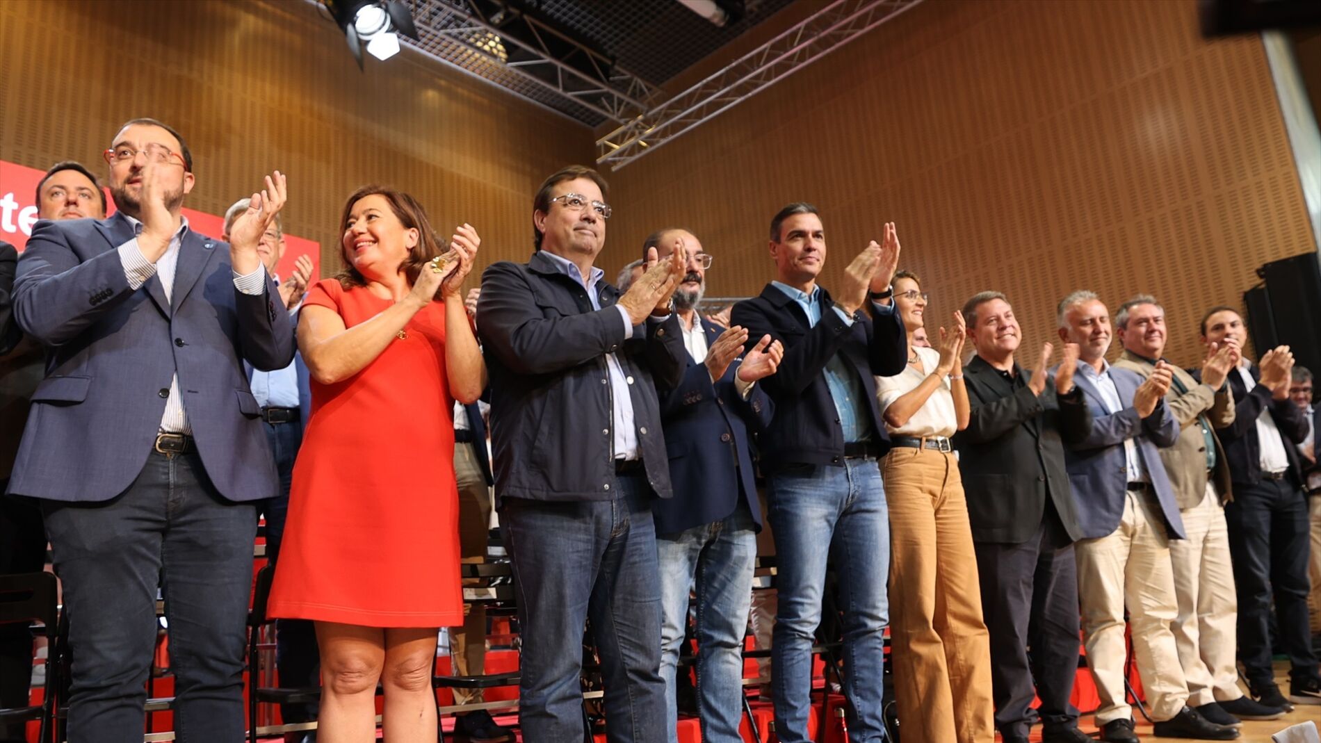 El PP seguiría siendo segunda fuerza, impulsado por unos sondeos que dan una importante subida a los populares. Por ello, Feijóo eligió Badajoz para abrir campaña y posteriormente volvió a Cáceres en otro mitin.