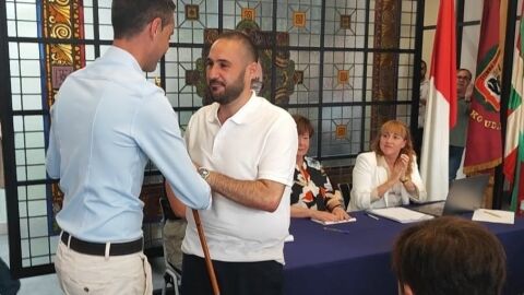Asier Larrauri fue elegido a mediodía de ayer nuevo alcalde de Bermeo con el apoyo de los cuatro concejales de la plataforma ciudadana Independiente Guzan y los cinco de EH Bildu, arrebatando la alcaldía al PNV (que obtuvo 8 concejales el 28M) que la ha ocupado durante los cuatro últimos años.