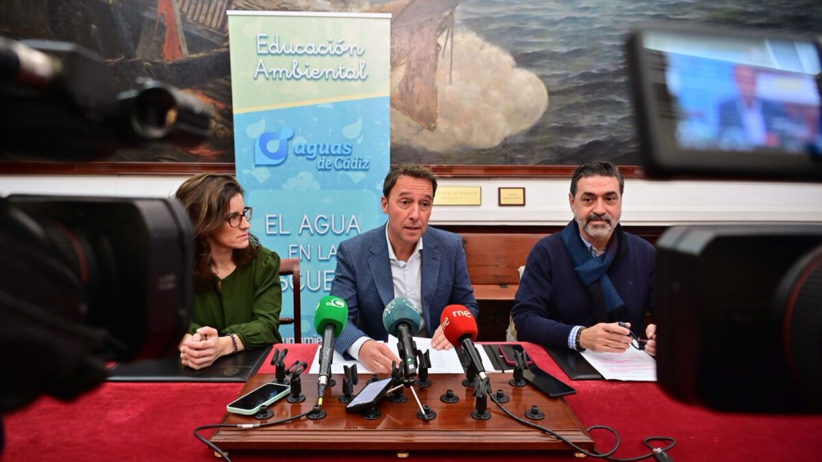 El presidente de Aguas de Cádiz y teniente de alcalde delegado de Urbanismo, José Manuel Cossi, acompañado del concejal delegado de Enseñanza, José Manuel Verdulla, y de la concejal delegada de Juventud e Infancia, Gloria Bazán, ha presentado el programa ‘El Agua en la Escuela’, que este año cumple su sexta edición. Este programa de educación ambiental que se iniciará a mediados de febrero en los centros educativos gaditanos interesados, ya hay un total de 12, pretende sensibilizar a niños y niñas sobre un bien tan importante y escaso como es el agua.