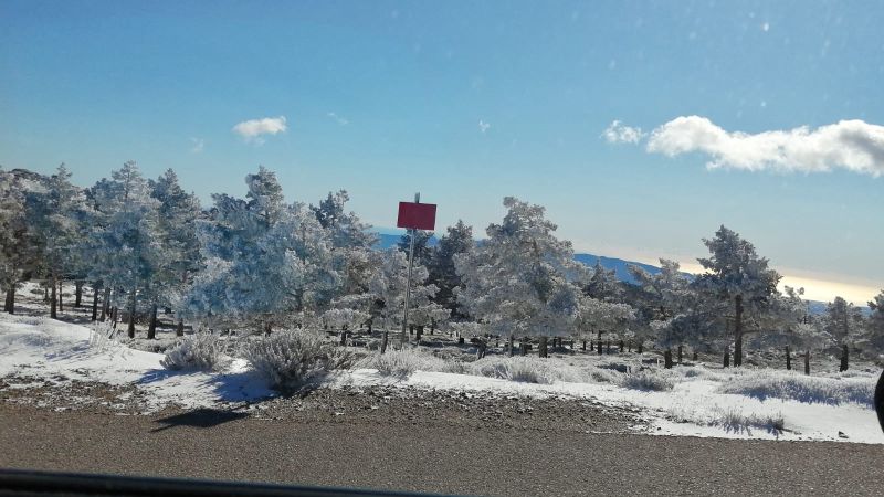 Es una de las estampas más entrañables que este lunes ha obligado a cortar por acumulación de hielo y nieve varias carreteras provinciales. Según la DGT, están cortadas al tráfico en ambos sentidos, la AL-3.102 del kilómetro 28 al 38 en Bacares, la AL-5.406 del kilómetro 0 al 10 en Serón y la AL-5.407 del kilómetro 0 al 4,7 en Bacares.