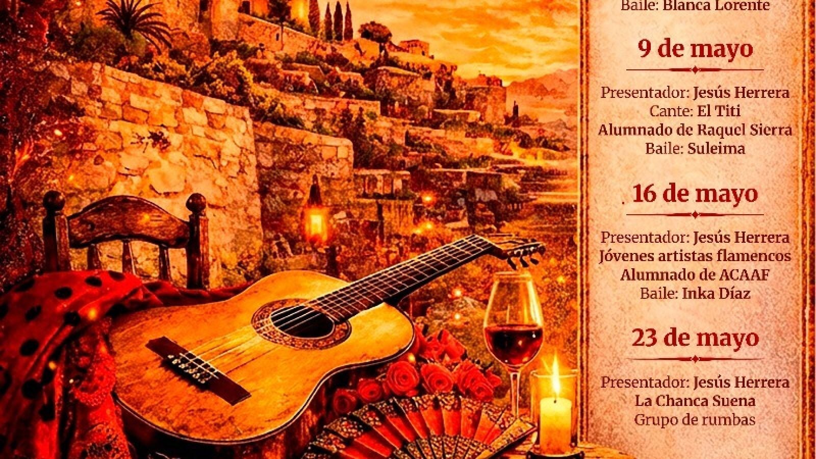 Llega mayo florido y con él, por segundo año, una nueva edición de 'Atardeceres Flamencos en el Mesón Gitano'. Una propuesta cultural que se celebrará durante los primeros cuatro sábados del mes de mayo, consolidándose como una de las citas destacadas en la programación de primavera de la ciudad puesta en marcha por el Área de Cultura, Educación y Tradiciones del Ayuntamiento de Almería. La primera cita será este sábado, 2 de mayo, a partir de las 19:30 horas y, como es habitual, con entrada libre hasta completar aforo.