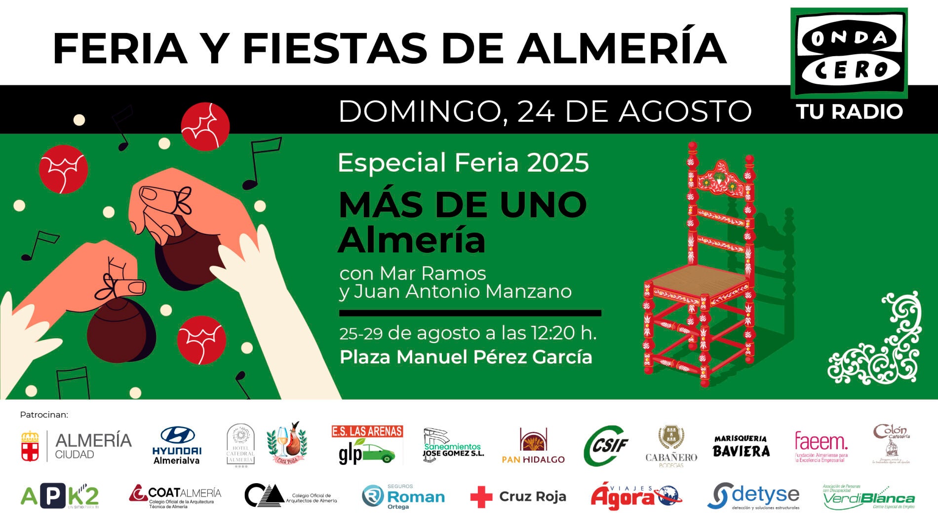 22:00 h > Concierto extraordinario de Feria de la Banda Municipal de Almería. Plaza de la constitución.