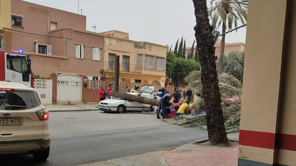 Al caer, impactó sobre el conductor de un ciclomotor y sobre un turismo, cuyos ocupantes han quedaron atrapados, por lo que fue precisa la intervención de los bomberos de Almería para excarcelar a la persona que iba al volante.