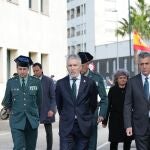 El ministro ha anunciado el refuerzo de activos ante la Comandancia de la Guardia Civil de Cádiz, donde se ha instalado la capilla ardiente de los dos agentes fallecidos este viernes.