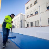 La actuación ha consistido en la renovación del pavimento de la plaza, de la zona deportiva y la mejora de la zona de juegos infantiles