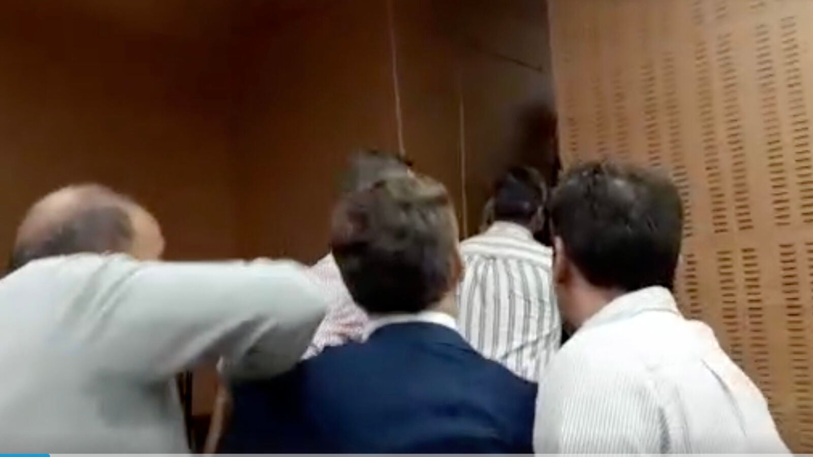 En un vídeo recogido por la periodista de Diario de Cádiz, Teresa Almendros, se ve como cargos de confianza y concejales de PSOE y PP protagonizan un enfrentamiento agrio tras la intervención del portavoz popular que indignó al ex alcalde socialista. En el salón de plenos también se encontraban agentes de la Policía Local del sindicato UPLBA reclamando mejoras de sus condiciones laborales.