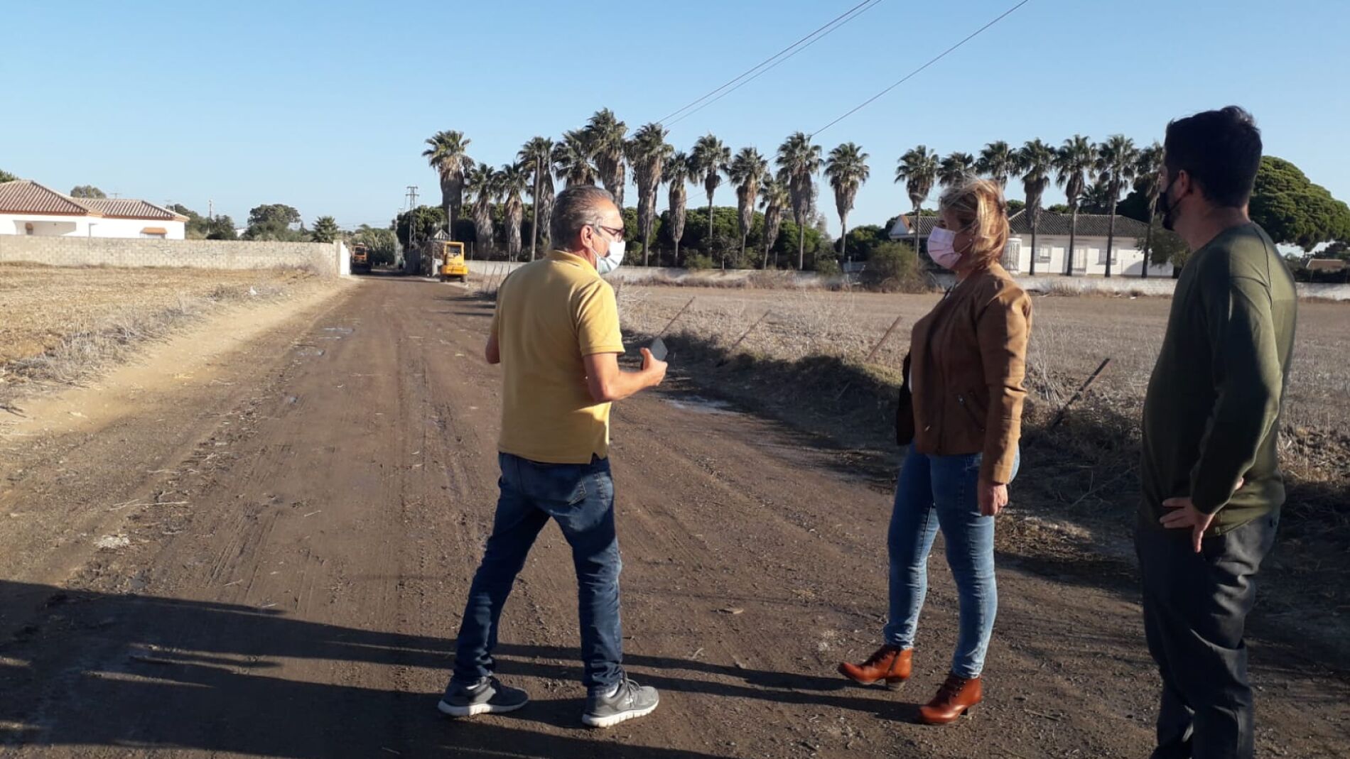 Con el objetivo de facilitar el tránsito de vehículos y evitar molestias entre los vecinos y usuarios de distintas vías, el Ayuntamiento de Chiclana, a través de la empresa municipal Chiclana Natural y la Delegación de Vías y Obras, continúa trabajando para mejorar los caminos del diseminado. En este sentido, los responsables municipales Roberto Palmero y Mª Ángeles Martínez, han visitado los trabajos que en estos días se están llevando en distintos caminos, en los que se está mejorando el estado de los mismos, deteriorados por el paso de vehículos pesados como tractores o camiones, así como por las lluvias del pasado año.