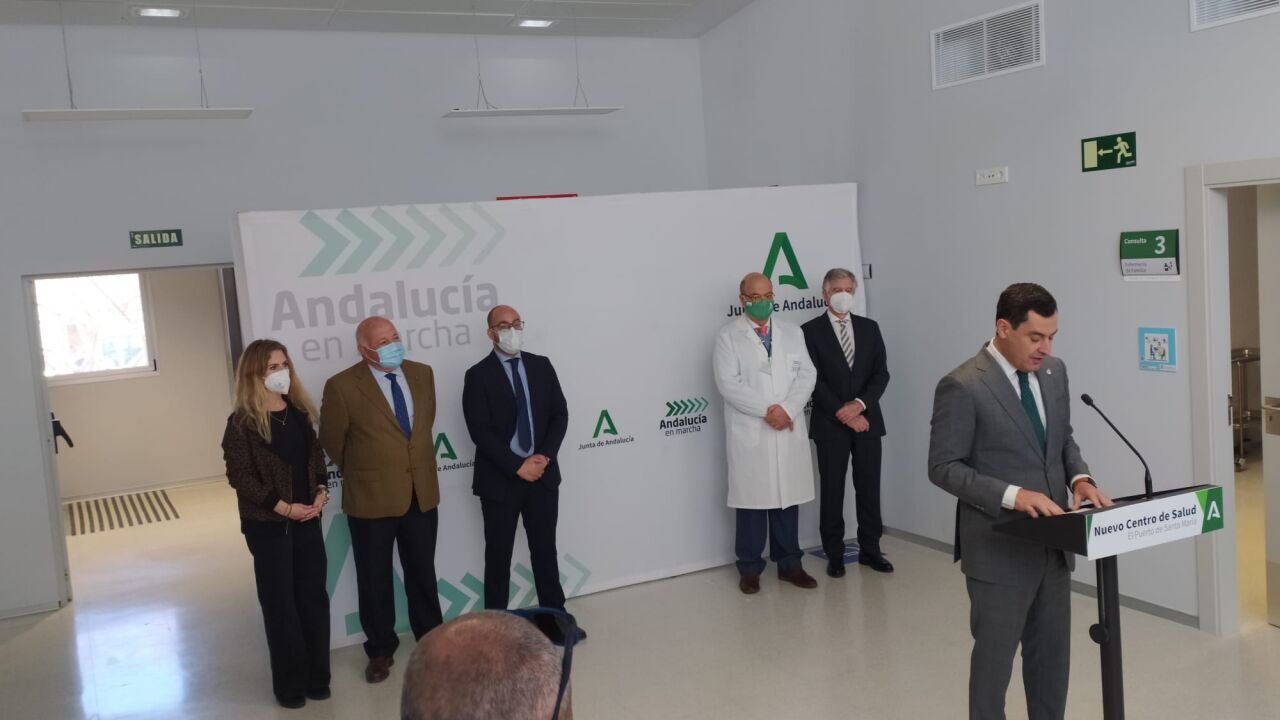 Tras tres años finalizado pero sin equipación, el Centro de Salud Ángel Salvatierra, en El Puerto de Santa María, ya tiene fecha de funcionamiento. Será el próximo martes cuando entre en funcionamiento este centro con una inversión de 4,3 millones de euros. Hoy lo ha inaugurado el presidente de la Junta de Andalucía, Juanma Moreno, acompañado por el Consejero de Salud de la Junta, Jesús Aguirre. Moreno ha explicado que esta inversión se traduce en un "aumento importante" de los recursos para la atención sanitaria de la población de este municipio, así como que este Centro de Salud de dos plantas cuenta con una plantilla inicial formada por seis profesionales de Medicina de Familia y otros seis de Enfermería, a los que se suman auxiliares, celadores, trabajadores sociales, entre otros.