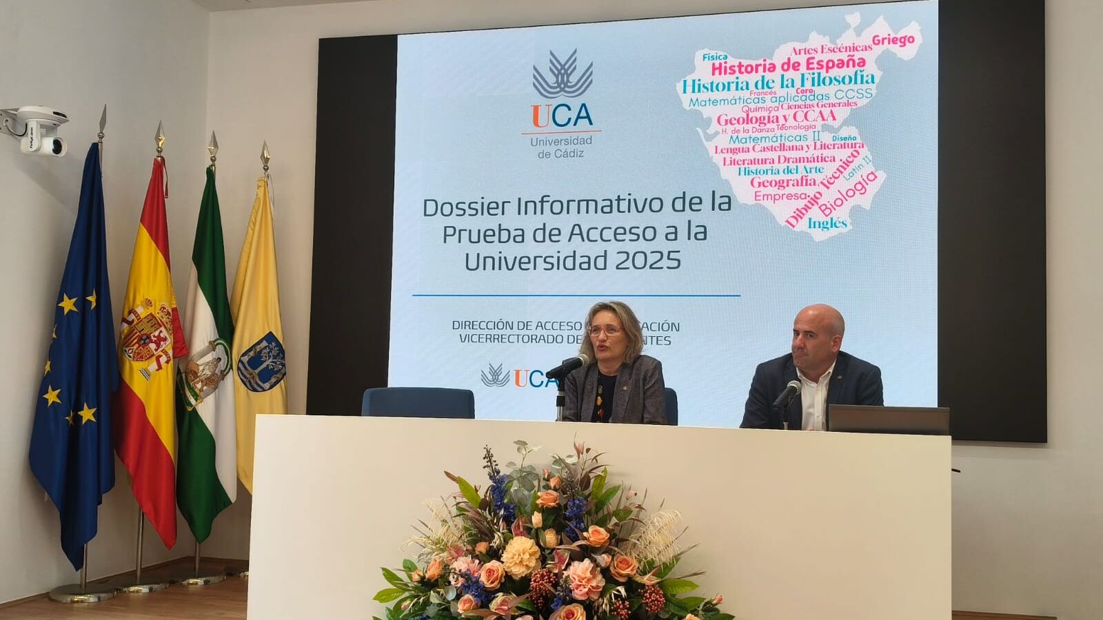 La Universidad de Cádiz ha dado a conocer este lunes la planificación y los principales datos relativos a la organización de la Prueba de Acceso a la Universidad (PAU) 2025, que se celebrará los días 3, 4 y 5 de junio en sus cuatro campus universitarios. El acto informativo ha tenido lugar en la Galería de Rectores del edificio del Rectorado, con la participación de la vicerrectora de Estudiantes, Nuria Campos, y el director general de Acceso y Orientación, Alejandro Pérez.