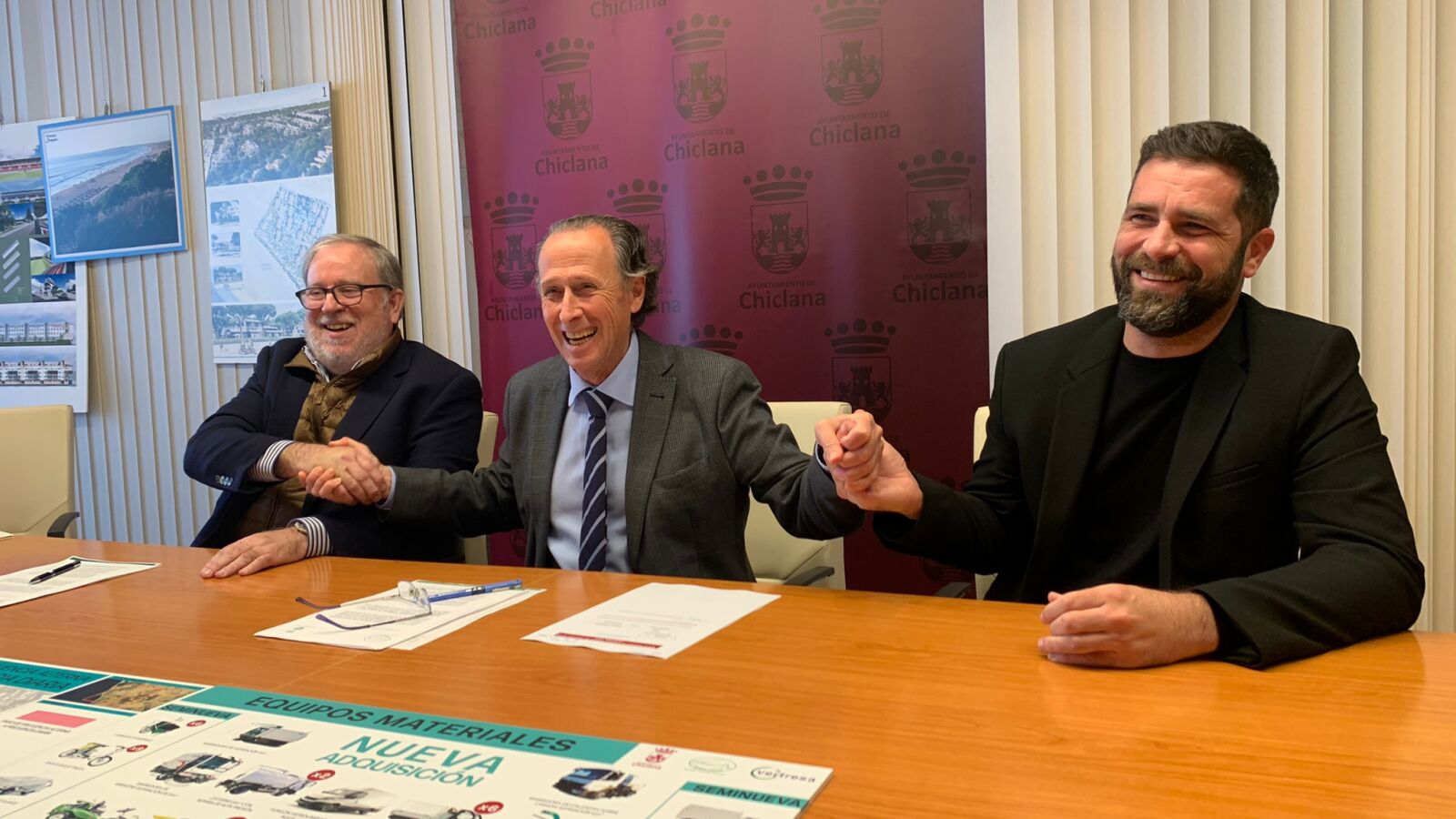 El alcalde de Chiclana, José María Román, y el director general adjunto de Vertresa, Santiago Alonso, han firmado este jueves el nuevo contrato del servicio de limpieza viaria en Chiclana. Un acto en el que también ha estado presente el delegado municipal de Medio Ambiente, Roberto Palmero. En este sentido, el nuevo contrato de limpieza viaria de Chiclana, que pasa de 2,4 millones a 3,6 millones al año, tendrá una duración de cuatro años, prorrogable por uno más, y que supone un total de 18 millones de euros, aunque también prevé un crecimiento de hasta un 20 por ciento en relación al crecimiento poblacional, lo que implicaría hasta 4,3 millones anuales. Además, prevé una inversión de 2,3 millones de euros en maquinaria nueva.
