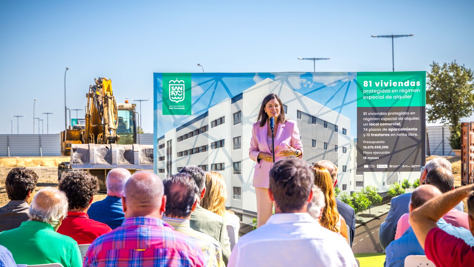 La alcaldesa, Patricia Cavada, ha expresado la satisfacción del Ayuntamiento por el inicio de los trabajos de construcción en Ronda del Estero de la promoción de viviendas protegidas en alquiler que permitirá mejorar la vida de 81 familias de San Fernando, dando "una respuesta de calidad a un problema de primer nivel" como es el acceso a la vivienda.