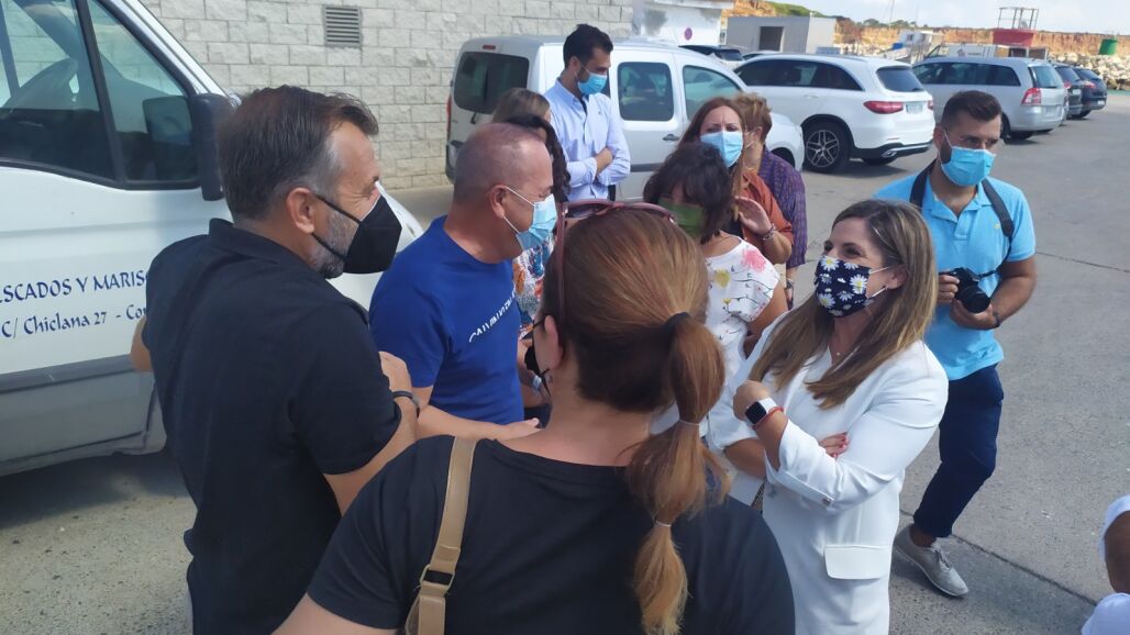 La presidenta de la Diputación, Irene García, ha visitado la localidad de Conil donde ha celebrado un encuentro institucional en el Ayuntamiento con su alcalde Juan Bermúdez. A continuación se ha desplazado al Muelle Pesquero, donde se ha entrevistado con miembros de la Federación de Cofradías de Pescadores de Cádiz y la Cofradía de Conil, y ha atendido a los medios de comunicación, acompañado por el diputado de Cooperación Local, Manuel Chacón.