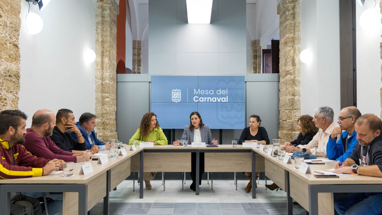 La Gran Plaza del Carnaval será el punto de encuentro tanto el primer fin de semana como a partir del jueves 15 de febrero. Lunes, martes y miércoles la actividad se concentrará en las propuestas de las peñas y el ya consolidado Concurso de Romanceros, que volverá a desarrollarse en el Centro de Congresos y Exposiciones Cortes de la Real Isla de León. La gran cabalgata, por la que también se ha hecho una apuesta de mejora de la calidad, cerrará la cita isleña. “El objetivo general, en definitiva, pasa por consolidar y mejorar nuestro Carnaval, apostando por un ambiente familiar y seguro y por ser ese lugar donde se sabe que se puede venir a escuchar a las mejores agrupaciones del concurso del Teatro Falla”, expuso a modo de conclusión Cavada. Los retos principales, seguir trabajando en “mejorar lo que ya se ha convertido en una seña de identidad como el Concurso de Romanceros” y ponerle un especial mimo a la cantera. La Mesa, con nuevas incorporaciones, seguirá avanzando en estas líneas en las próximas semanas. En esta primera convocatoria estuvieron presentes Mar Suárez, ex delegada de Fiestas en el anterior mandato; José Antonio Betanzos Valencia (coros); Manuel Aleu Jiménez; Paco Clares; María Cortejosa García (FIPE); Jesús Montero Torrejón (chirigotas): Loli Guerra de los Santos (romanceros); Pablo de la Rosa Ortega (cantera) y Dani Oliva Gómez (comparsas).