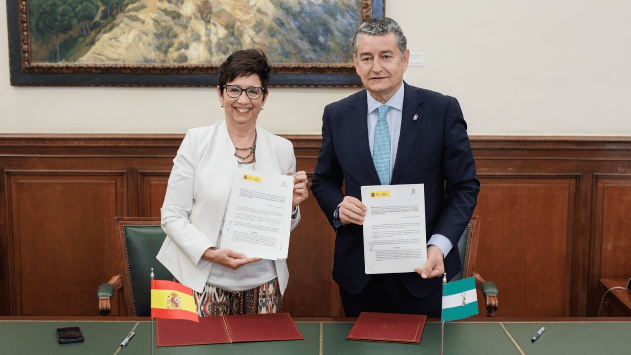 La subsecretaria del Ministerio de Hacienda y Función Pública y presidenta del Consorcio Aletas, Pilar Paneque, y el consejero de la Presidencia, Interior, Diálogo Social y Simplificación Administrativa y vicepresidente del Consorcio Aletas, Antonio Sanz, han firmado este miércoles en Madrid el protocolo de intenciones previsto para avanzar en la materialización de la plataforma logística, tecnológica y medioambiental de la Bahía de Cádiz. Así, con la rúbrica de este protocolo se crea una nueva sociedad -Sociedad Lógica-, que sustituye al Consorcio Aletas, así como las funciones que tendrá en líneas generales. Esta sociedad estará participada en un 55% por la Administración General del Estado y por un 45% por el Gobierno andaluz.