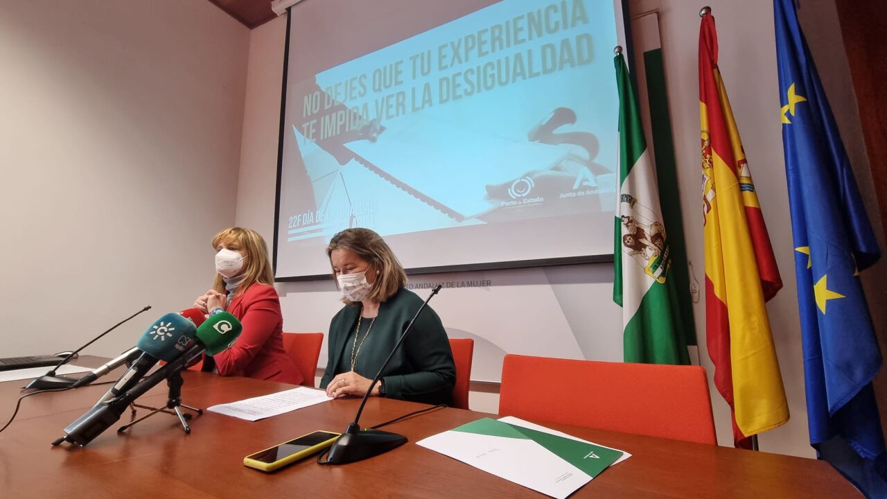El Instituto Andaluz de la Mujer ha presentado esta mañana en Cádiz la campaña sobre la brecha salarial que este año tiene como lema ‘No dejes que tu experiencia te impida ver la desigualdad”, que impulsa la Consejería de Igualdad, Políticas Sociales y Conciliación, a través del Instituto Andaluz de la Mujer, con motivo del Día de la igualdad salarial que se conmemora el 22 de febrero. En Andalucía la brecha salarial supera los 5.000 euros (5.136,15 euros), según la Encuesta de Estructura Salarial 2021 del Instituto Nacional de Estadística (INE), lo que supone un 15% menos que en el anterior informe cuando alcanzó los 6.040 euros. La asesora de programa del Instituto Andaluz de la Mujer (IAM) en Cádiz, Celia Mañueco, y la delegada territorial de Igualdad, Políticas Sociales y Conciliación, Ana Fidalgo, han subrayado que “la desigualdad salarial es una realidad calculable y existente a nivel mundial que se demuestra mediante estadísticas realizadas periódicamente. Una realidad que perjudica de manera clara y directa a las mujeres, promoviendo así una feminización de la pobreza”.