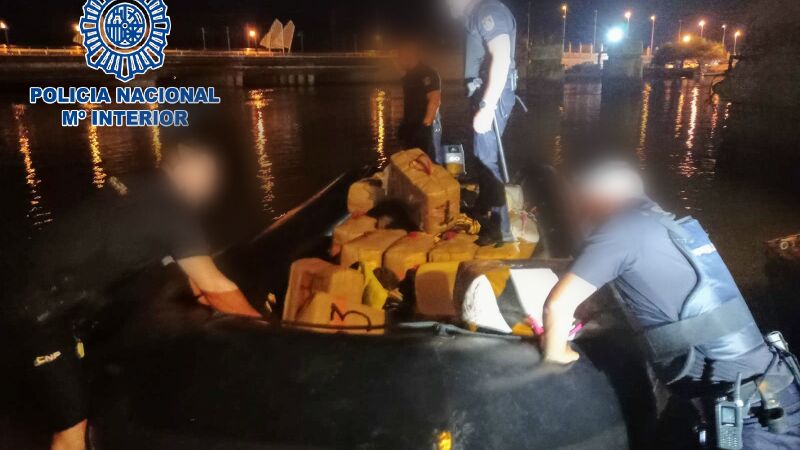 Agentes de la Policía Nacional han detenido en El Puerto de Santa María a dos hombres de 37 y 42 años de edad como presuntos autores de un delito contra la salud pública. Los detenidos fueron interceptados en la madrugada del lunes 9 de agosto cuando pilotaban una embarcación neumática que transportaba 50 fardos de hachís con un peso aproximado de 1650 kilos. Los detenidos tras ser puestos a disposición del Juzgado de Instrucción en funciones de guardia en El Puerto de Santa María. Sobre las 02h50 de la madrugada, los agentes de la Brigada de Seguridad Ciudadana que realizaban un patrullaje preventivo por la zona la playa de “La Puntilla” observaron a una persona que desde el espigón de la citada playa estaba haciendo señales en dirección al mar con un dispositivo luminoso en las manos. Los policías descubrieron la presencia de una embarcación neumática que pretendía acceder por el río Guadalete, la cual iba bastante cargada y en la que se podían divisar paquetes de color claro. El sospechoso localizado en la playa al percatarse de la presencia policial, tiró el dispositivo de señalización huyendo del lugar.