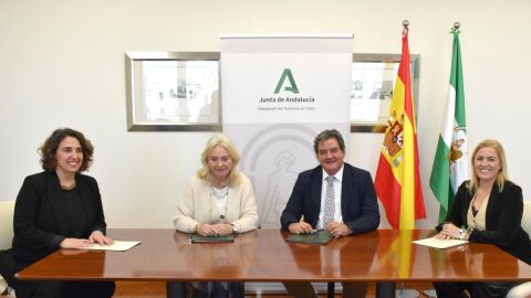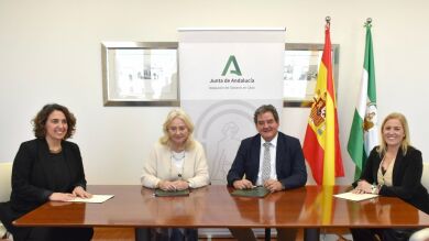 La delegada del Gobierno de la Junta de Andalucía en Cádiz, Mercedes Colombo, y las delegadas territoriales de Fomento, Articulación del Territorio y Vivienda, Carmen Sánchez, y de Salud y Consumo, Eva Pajares, han participado hoy en el acto de firma de un convenio de colaboración entre el Consorcio de Transportes de la Bahía de Cádiz y el Servicio Andaluz de Salud (SAS). El objeto de este documento es la mejora del acceso, así como la adecuación y el establecimiento de una nueva parada de autobús metropolitano en el ámbito del Hospital Universitario de Puerto Real. En esta rúbrica han estado presentes, además, entre otros, el director gerente de este Hospital, José Luis Guijarro, y Concepción Parra, directora gerente del Consorcio de Transportes de la Bahía de Cádiz, ente adscrito a la Consejería de Fomento, Articulación del Territorio y Vivienda.