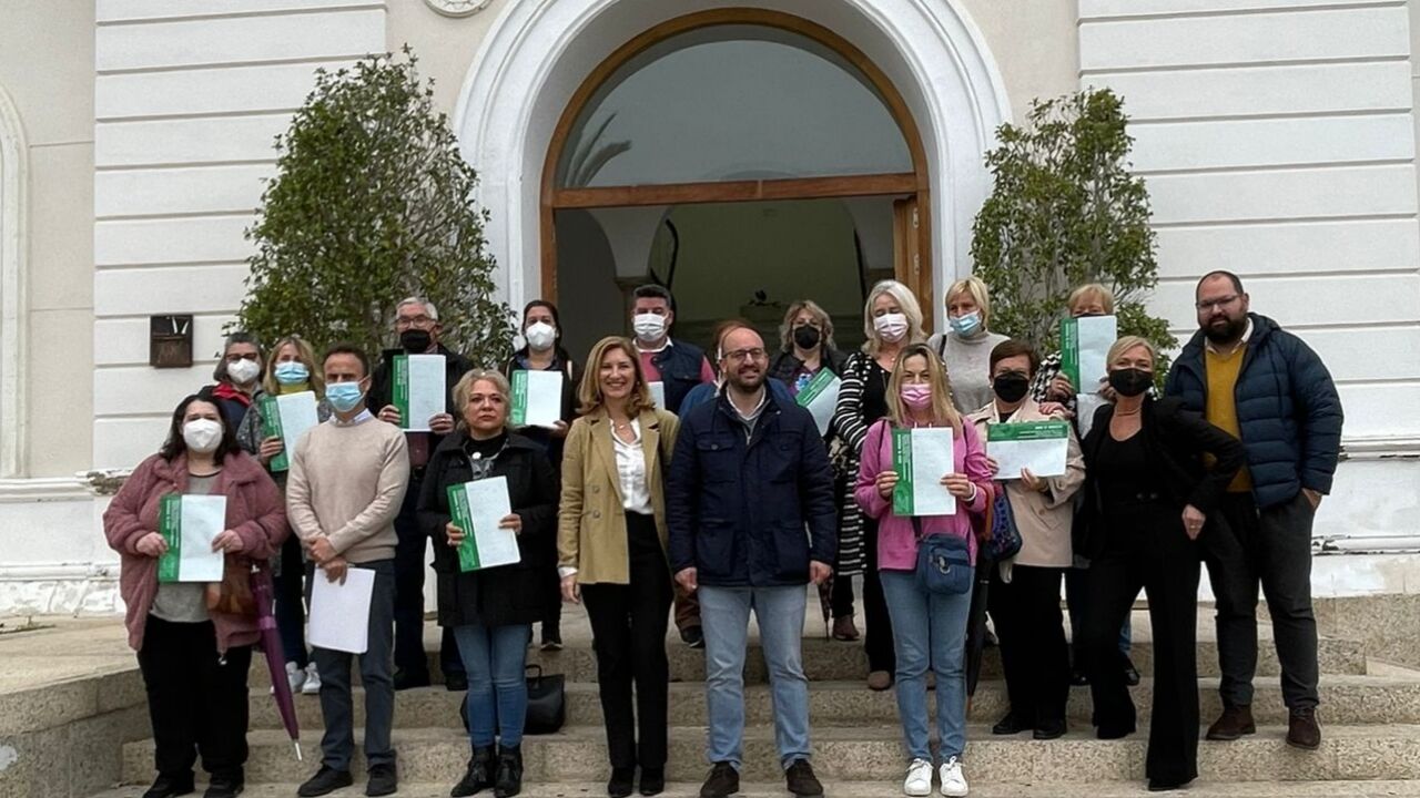 El alcalde Germán Beardo, junto a la secretaria General de Vivienda de la Junta de Andalucía, Alicia Martínez, y la delegada territorial de Fomento, Mercedes Colombo, han entregado en el Ayuntamiento de El Puerto el pago del 50% de la ayuda del programa de Áreas de Rehabilitación Integral (ARI) que se destina a El Puerto de Santa María a los doce presidentes de las comunidades de propietarios y vecinos de la Barriada de Los Milagros, dentro del Programa Operativo FEDER específico para la Inversión Territorial Integrada (ITI) de Cádiz 2014/2020.