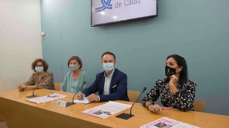 El responsable de la delegación de Bienestar Social de Diputación, David de la Encina, y la presidenta de la Asociación de Mujeres con Cáncer ‘Bahía’, Yolanda Beláustegui, junto a las también miembros de la entidad Carmen Correa y María José Moreno, han presentado en rueda de prensa la ‘V Marcha Rosa en Los Toruños’, un evento solidario cuyo fin es recaudar fondos destinados a la investigación contra el cáncer. De la Encina ha expresado su admiración y agradecimiento hacia el colectivo organizador, así como a las mujeres que lo integran, por el “afecto” y “cariño de familia” que ofrecen a cualquier mujer que tiene que enfrentarse a esta enfermedad y que, gracias a asociaciones como ‘Bahía’, “saben que no se van a encontrar solas”.