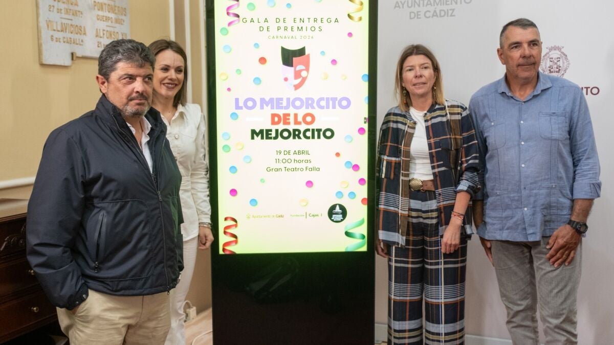 El Gran Teatro Falla acogerá el próximo domingo 19 de abril a partir de las 11 horas la tercera gala ‘Lo mejorcito de lo mejorcito’. La teniente de alcalde de Fiestas y Carnaval, Beatriz Gandullo, la responsable de la Fundación Cajasol en Cádiz, Mar Díez, y los representantes de la Asociación de Autores del Carnaval de Cádiz, Francis Sevilla Pecci, y de la Asociación de la Cantera, Mario Rodríguez Parra, han dado a conocer este lunes la celebración de este espectáculo, que estará dedicado a la cantera.