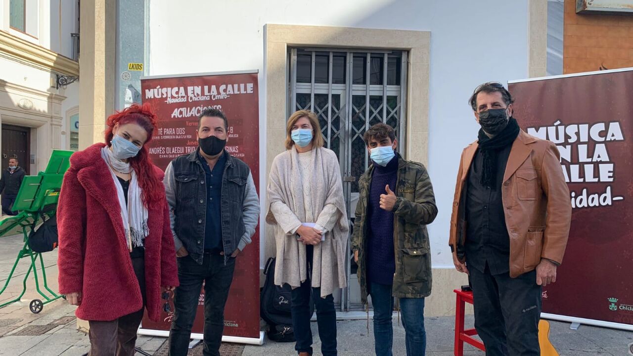 La delegada municipal de Fomento, Pepa Vela, ha asistido al comienzo de la iniciativa ‘Música en la Calle’, que ha empezado a las doce de la mañana de este 10 de diciembre con la actuación de ‘Té para dos’. Esta primera actuación se desarrolla en la confluencia entre las calles Corredera y La Vega. “Hoy ponemos en marcha un ciclo de conciertos en las calles de Chiclana, no solo en el centro, sino también en la zona de La Banda”, ha indicado Pepa Vela, quien ha recalcado que “son 15 conciertos distribuidos a lo largo de las próximas semanas, contando con artistas y grupos de música de gran calidad”. “No podemos olvidar que el COVID-19 está presente, por lo que pedimos a la ciudadanía cautela”, ha expresado la delegada de Fomento, quien ha añadido que, “a través de esta iniciativa queremos reactivar las compras en la ciudad y, como consecuencia de ello, la economía de Chiclana”.
