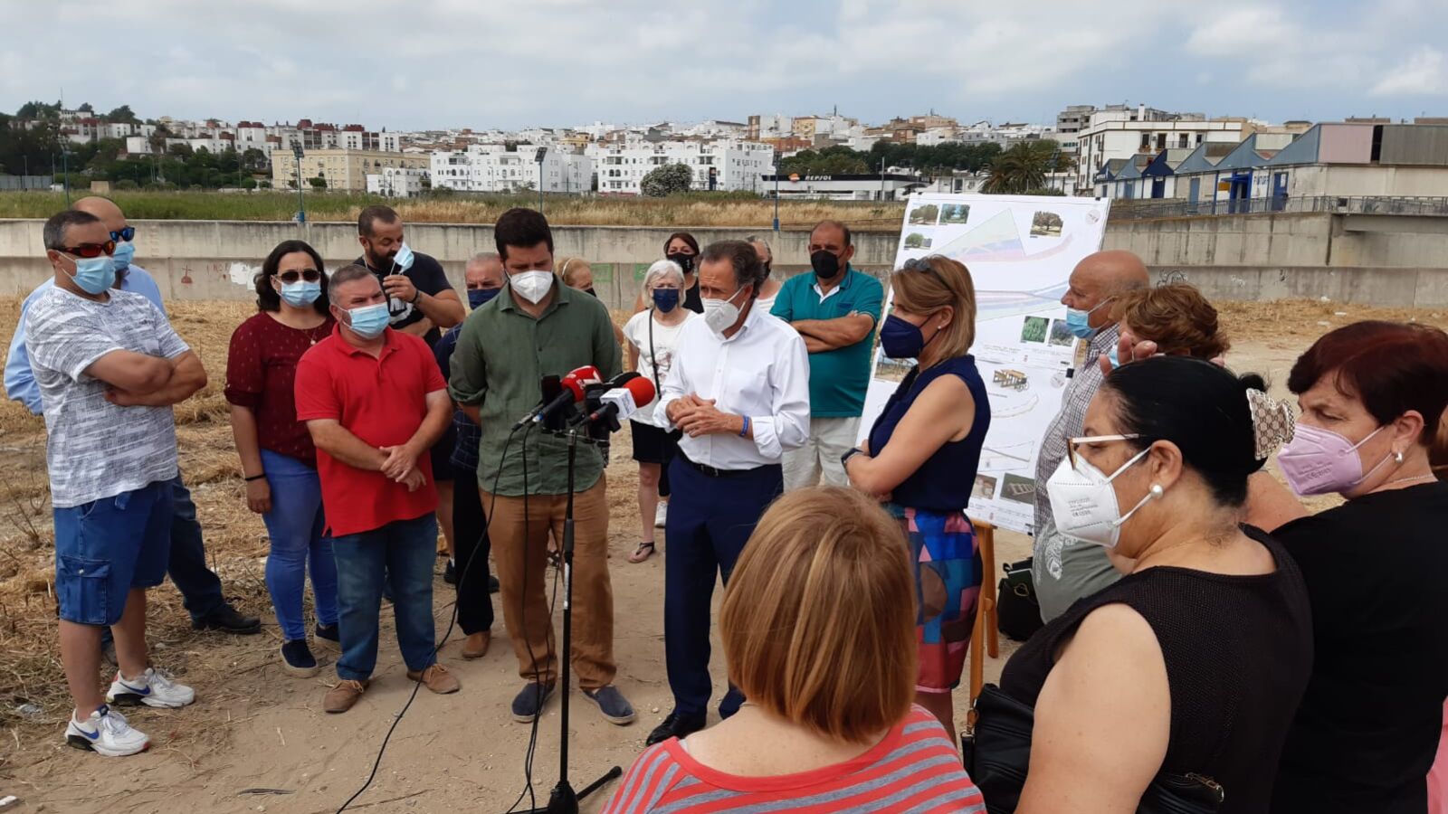 El alcalde de Chiclana, José María Román, y el delegado de Medio Ambiente, Roberto Palmero, acompañados por la responsable de Participación Ciudadana, Mª Ángeles Martínez, han presentado a los vecinos de la zona el proyecto de adecuación y construcción del nuevo parque urbano entre la barriada El Arenal y el puente de La Concordia y que se situará a ambos márgenes del río Iro. Una iniciativa que tiene como objetivo poner en valor las parcelas existentes en la ribera del Iro a su paso por esta zona de la ciudad, dotándola de nuevos espacios verdes y de ocio a ambos márgenes del río.