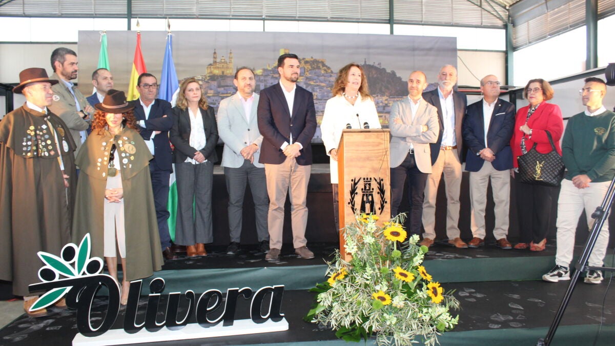 La alcaldesa de Olvera, Remedios Palma, acompañada de los productores, el delegado de Agricultura, Pesca, Agua, y Desarrollo Rural de la Junta de Andalucía en Cádiz, Francisco José Moreno, el presidente de la Mancomunidad de Municipios de la Sierra de Cádiz,Carlos Javier García, ha inaugurado Olivera 2025.
