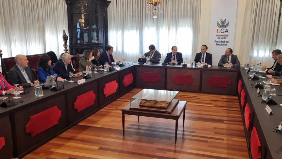 El rector de la Universidad de Cádiz, Casimiro Mantell, y el consejero de Universidades, Investigación e Innovación de la Junta de Andalucía, José Carlos Gómez, han presidido hoy en el salón de Grados de la Facultad de Medicina una primera reunión de trabajo entre los equipos de dirección de ambas instituciones para analizar y poner sobre la mesa distintos temas y proyectos relacionados con las necesidades de gestión, crecimiento y mejora de la UCA en los próximos años: nuevas titulaciones, investigación, nuevo modelo de financiación, infraestructuras, personal, emprendimiento y empleabilidad, transformación digital, internacionalización o sostenibilidad, ente otros.