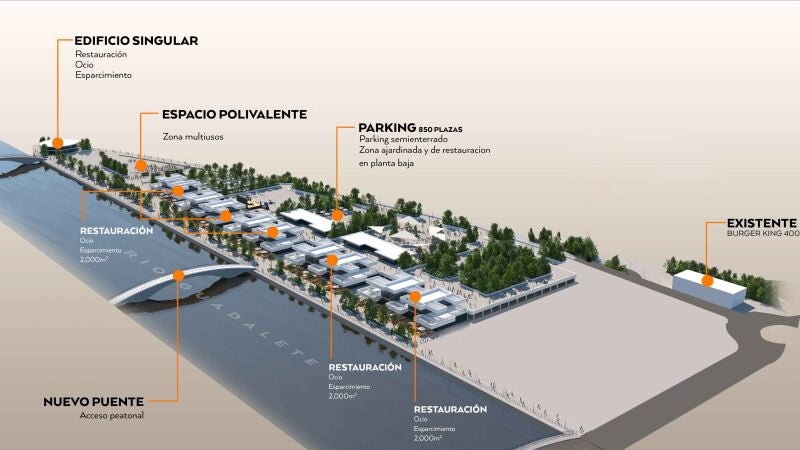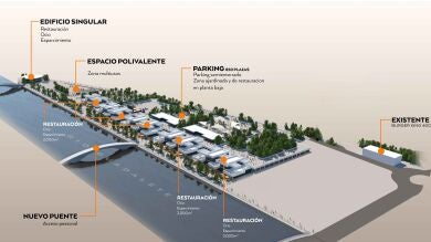 El proyecto pretende convertir este espacio en un elemento unificador de ambas márgenes del río, conectado peatonalmente por la pasarela actual y por una segunda infraestructura en un futuro, y aportando valor mediante la generación de plazas de aparcamiento en la zona que descongestionen el centro de la ciudad de tráfico rodado. La inversión plantea un edificio singular, la creación de un espacio polivalente multiusos, una zona de restauración, además del mencionado aparcamiento semienterrado, con zona ajardinada y de restauración en la planta baja.