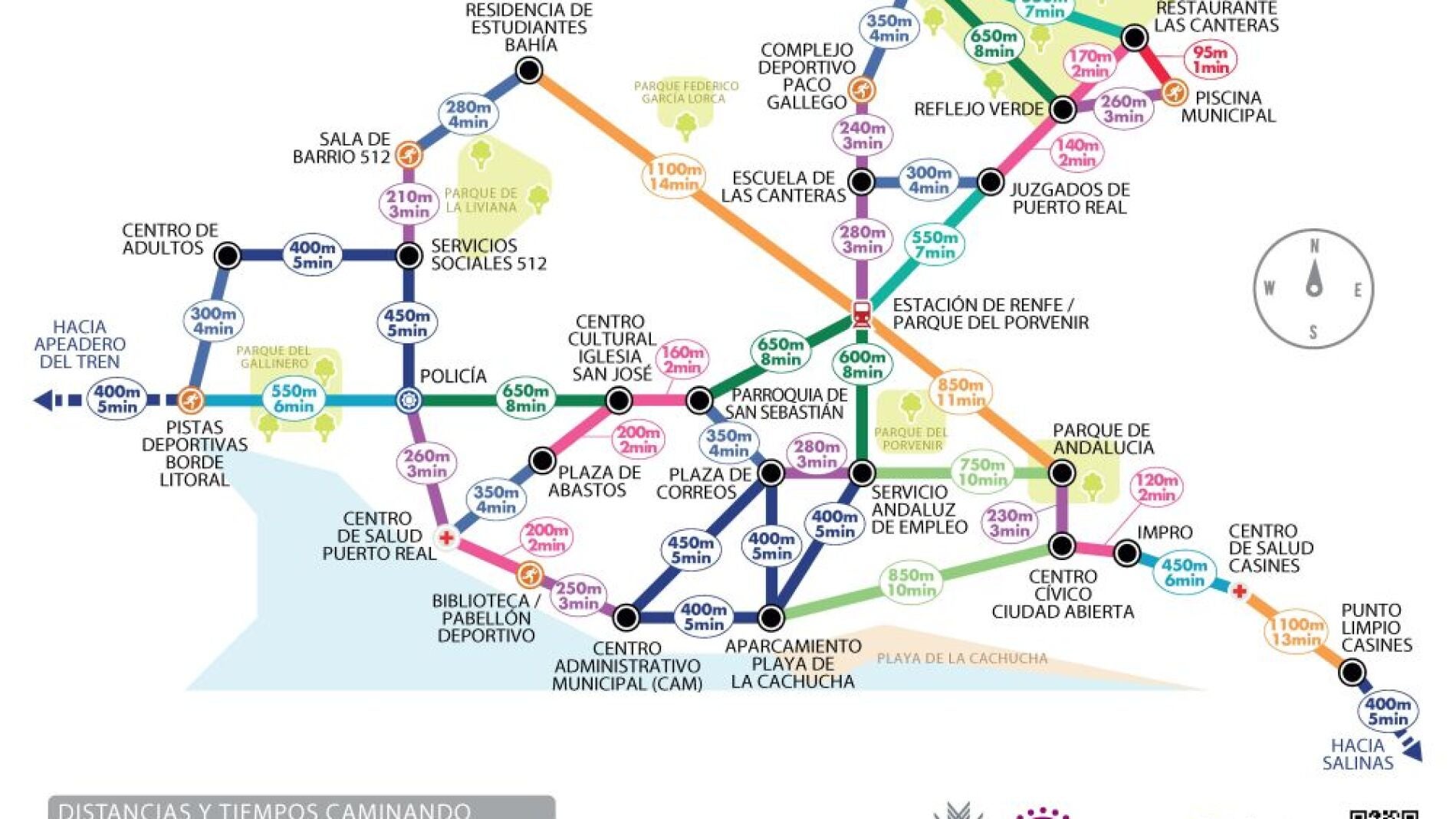 Puerto Real y la Universidad de Cádiz han impulsado la campaña 'Puerto Real y la Universidad combinan sus pasos' con el objetivo de crear una acción de sensibilización medioambiental para fomentar la reducción de vehículos motorizados. Así, ambas entidades esperan facilitar el acercamiento de la comunidad universitaria a la población de Puerto Real y el entorno ambiental privilegiado de Puerto Real a la vida universitaria. El “Metrominuto UCA-Puerto Real” es una representación esquemática de la zona centro del municipio de Puerto Real y del campus universitario representando los principales puntos de centralidad (equipamientos, edificios universitarios, plazas, parques, centros de barrio...) junto con las distancias que las separan expresadas en metros y en minutos.