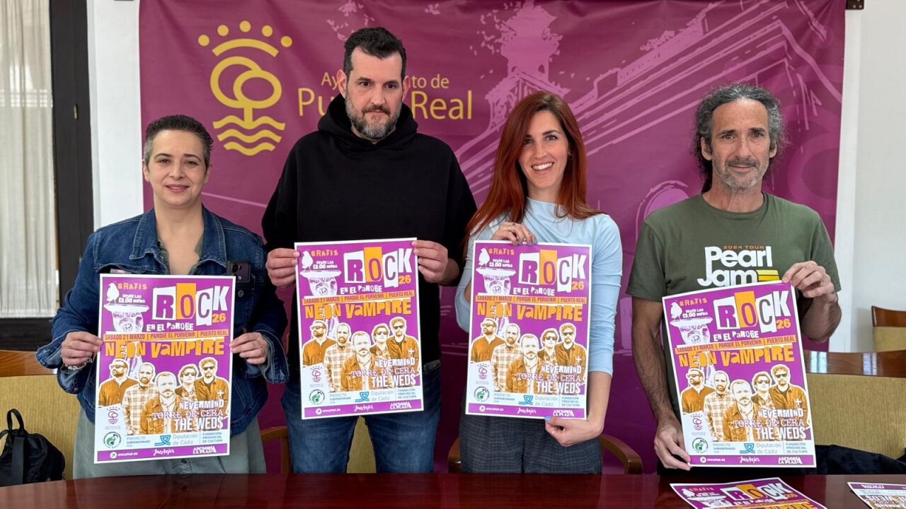 El próximo sábado 21 de marzo, Puerto Real vibrará al ritmo del mejor rock local con la celebración del evento “Rock en el Parque”, que tendrá lugar a partir de las 13:00 horas en El Porvenir. El evento, organizado por la Asociación de Músicos de Puerto Real conjuntamente con el Ayuntamiento, lo han presentado la concejala de Cultura, Nazaret Ramírez, y Luis Romero, secretario de la asociación organizadora.