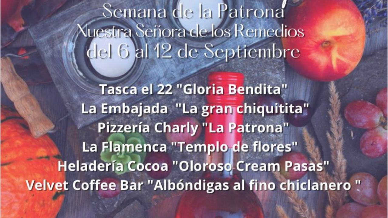 La Ruta de la Tapa con motivo de la festividad de Nuestra Señora de los Remedios se desarrollará del 6 al 12 de septiembre en diversos establecimientos del centro de la ciudad. Se trata de una iniciativa puesta en marcha por el Ayuntamiento de Chiclana en colaboración con la Asociación Chiclanera de Hostelería y la Plataforma Vive Chiclana y cuyas tapas están inspiradas en productos típicos de Chiclana.