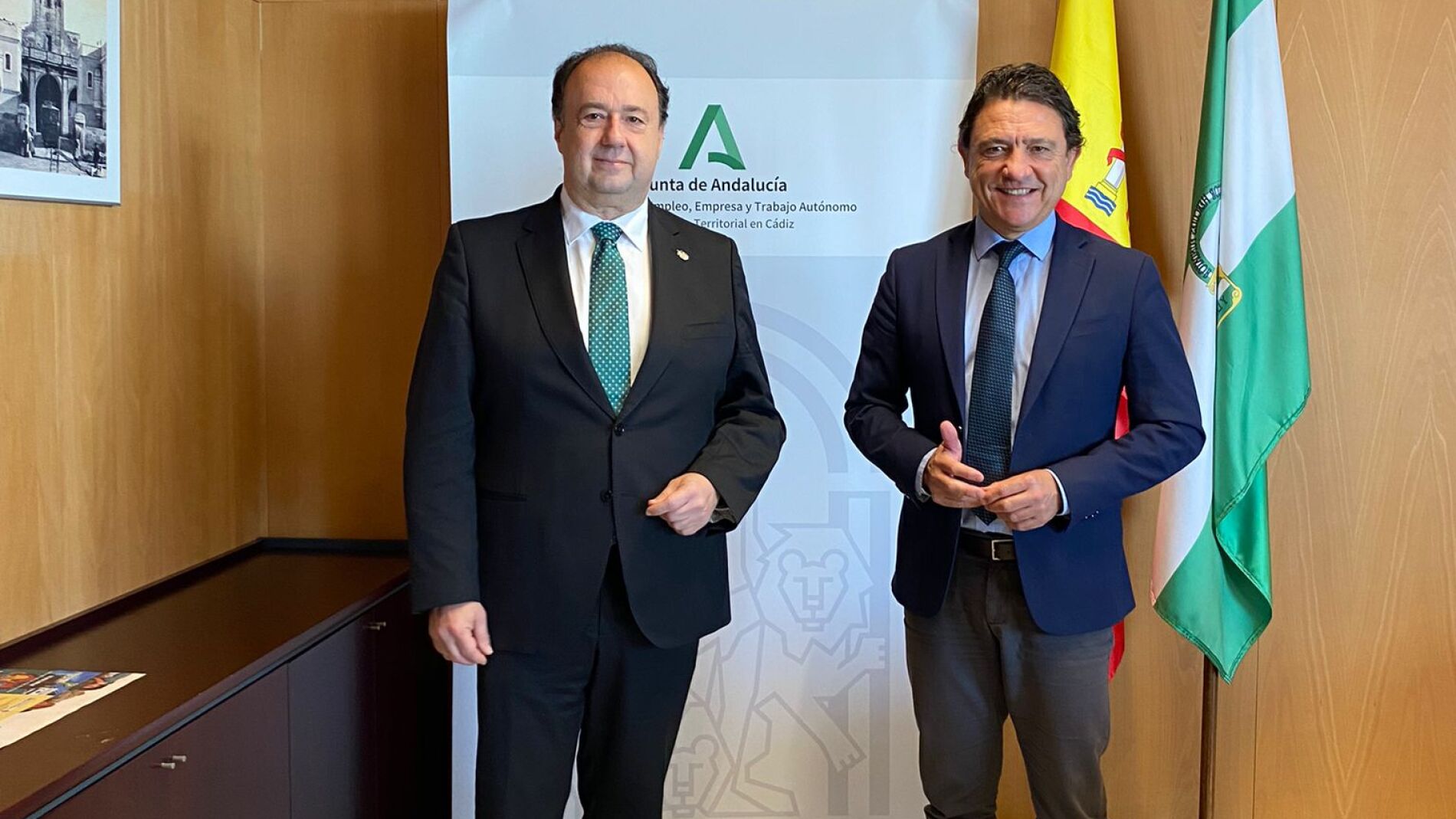 El delegado territorial de Empleo, Empresa y Trabajo Autónomo de la Junta en Cádiz, Daniel Sánchez Román ha recibido al nuevo rector de la Universidad de Cádiz, Casimiro Mantell, en una primera toma de contacto para repasar los asuntos de interés común de ambas instituciones. La reunión ha podido servir también como plataforma para tratar posibles colaboraciones futuras y nuevas estrategias en torno al empleo. Daniel Sánchez ha agradecido el encuentro al nuevo rector de la UCA y le ha mostrado la necesidad de mantener un trabajo coordinado “dada la importancia de la Universidad como motor social, económico y de innovación y emprendimiento en la provincia con una relación directa en la consecución de un empleo para cualquier demandante”, ha explicado.