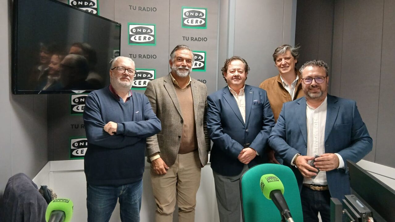 José Salamanca Serrano (Reputado cofrade, Gerente y Chef de la Cazuela de La Espartería), Arístides Bermejo (Coordinador General de la delegación de Turismo del Ayuntamiento de Córdoba), Manolo Bonilla (Hermano Mayor de la Hermandad de la Santa Cena y Rafael López (Vocal de Procesión de HHCC de Córdoba) comparten tertulia con Manolo Serrano