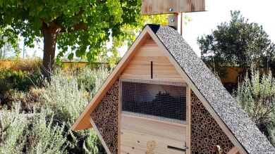 Aguas de Montilla coloca un hotel para insectos, cajas nido y mariposario para preservar la biodiversidad en la depuradora