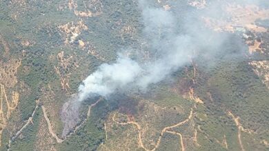 Desde tierra se utilizan dos camiones autobombas, 53 bomberos forestales, tres técnicos de operaciones, dos agentes de Medio Ambiente y el subdirector de COP.