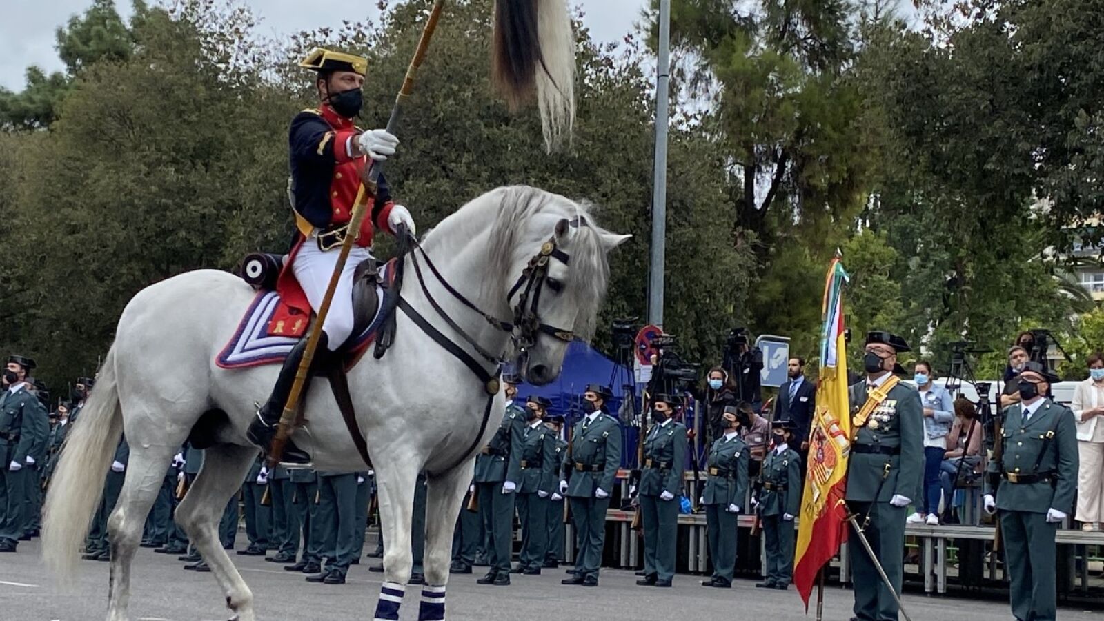 La Av. República Argentina ha sido escenario del acto central de la semana institucional que se celebra en nuestra ciudad con motivo de la festividad de la patrona de la Guardia Civil, la Virgen del Pilar. Presidido por el Ministro del Interior, Fernando Grande Marlaska el acto ha consistido en una parada militar y desfile, en el que han participado más de 500 guardias civiles pertenecientes a las diferentes unidades y especialidades de la Guardia Civil, a pie, a caballo y motorizadas y del que han sido testigos miles de cordobeses concentrados a lo largo de la avenida y en calles aledañas. El Ministro ha estado acompañado en la tribuna de autoridades por el presidente del Tribunal Constitucional, Juan José González Rivas; el ministro de Agricultura, Pesca y Alimentación, Luis Planas; el alcalde de Córdoba, José María Bellido; el secretario de Estado de Seguridad, Rafael Pérez; la directora general de la Guardia Civil, María Gámez; y el delegado del Gobierno en Andalucía, Pedro Fernández. Antes del desfile Fernando Grande Marlaska ha tomado la palabra y en medio de abucheos y gritos del público pidiendo su dimisión ha destacado la labor de la Guardia Civil allí donde se la requiere con un especial recuerdo y saludo a los guardias que están trabajando en La Palma con motivo de la erupción del volcán Cumbre Vieja. El ministro del Interior anunciaba en su intervención que la Guardia Civil abrirá el acceso a la Escala de Oficiales a las personas con titulación universitaria en aquellas disciplinas de interés para el cuerpo, y en la que los aspirantes se someterán a una formación de dos años. Anunciaba también que elevará el rango del mando de la comandancia de Córdoba para que pase a ser dirigida por un coronel. Durante el acto se impusieron diversas condecoraciones de la Guardia Civil a miembros del cuerpo, de las Fuerzas Armadas y de otros cuerpos de Seguridad, así como a personal civil en sus categorías de Gran Cruz, Cruz de Plata, Cruz con distintivo Rojo y Blanco. Y por primera vez se realizó un reconocimiento a las familias de los Guardias Civiles que acompañan a la benemérita en cada una de sus misiones.