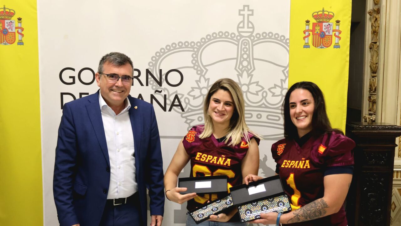 La Subdelegación del Gobierno en Granada, con José Antonio Montilla a la cabeza, ha recibido a las jugadoras granadinas de la Selección Nacional Femenina de Fútbol Americano. Ellas son Laura Martínez Fiñaga y Carla Blanca Lasheras, proclamadas campeonas de Europa el pasado mes de abril.