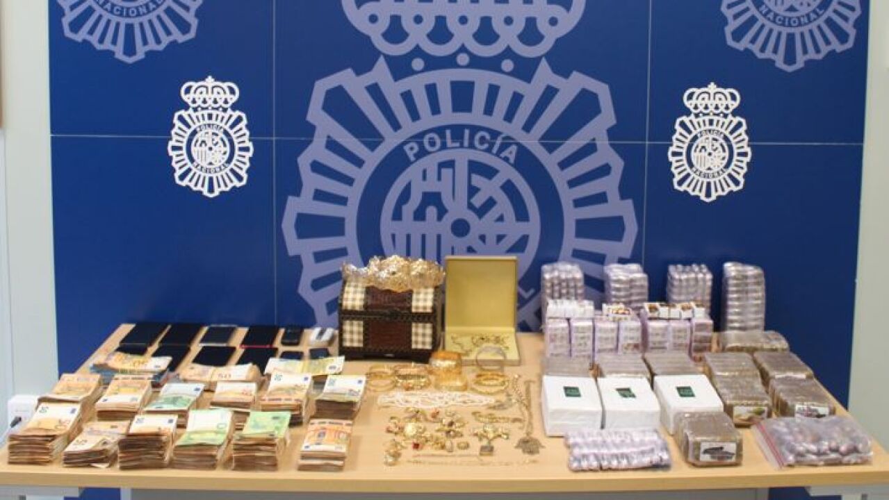 Durante los registros, los agentes hallaron más de 250 kilos de hachís en forma de tabletas y bellotas ocultos en el interior de arcones congeladores ubicados en los trasteros. Además, se intervinieron más de 144.000 euros en metálico, numerosos teléfonos móviles, dos balanzas de precisión, material de embalaje y una notable cantidad de joyas: anillos, pulseras, collares, colgantes y pendientes.