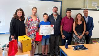 Durante la jornada del lunes 13 de junio, Antonio Villanueva, Gestor de Asuntos Públicos, Comunicación y sostenibilidad de Huelva y Cádiz, ha visitado las instalaciones del IES La Rábida para hacer entrega del premio al ganador provincial de Huelva, Héctor Llerena, con la presencia de Juan Antonio Moreno , director del centro y Elena García profesora que presentó la candidatura del IES en el concurso.