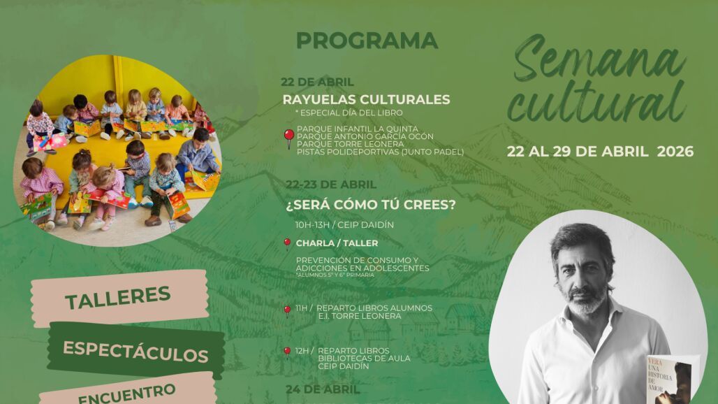 Como cierre destacado, el 29 de abril se celebrará un encuentro literario con el autor galardonado con el Premio Planeta, Juan del Val, consolidando la Semana Cultural como un espacio que conecta la promoción de la lectura con figuras relevantes del panorama literario contemporáneo.
