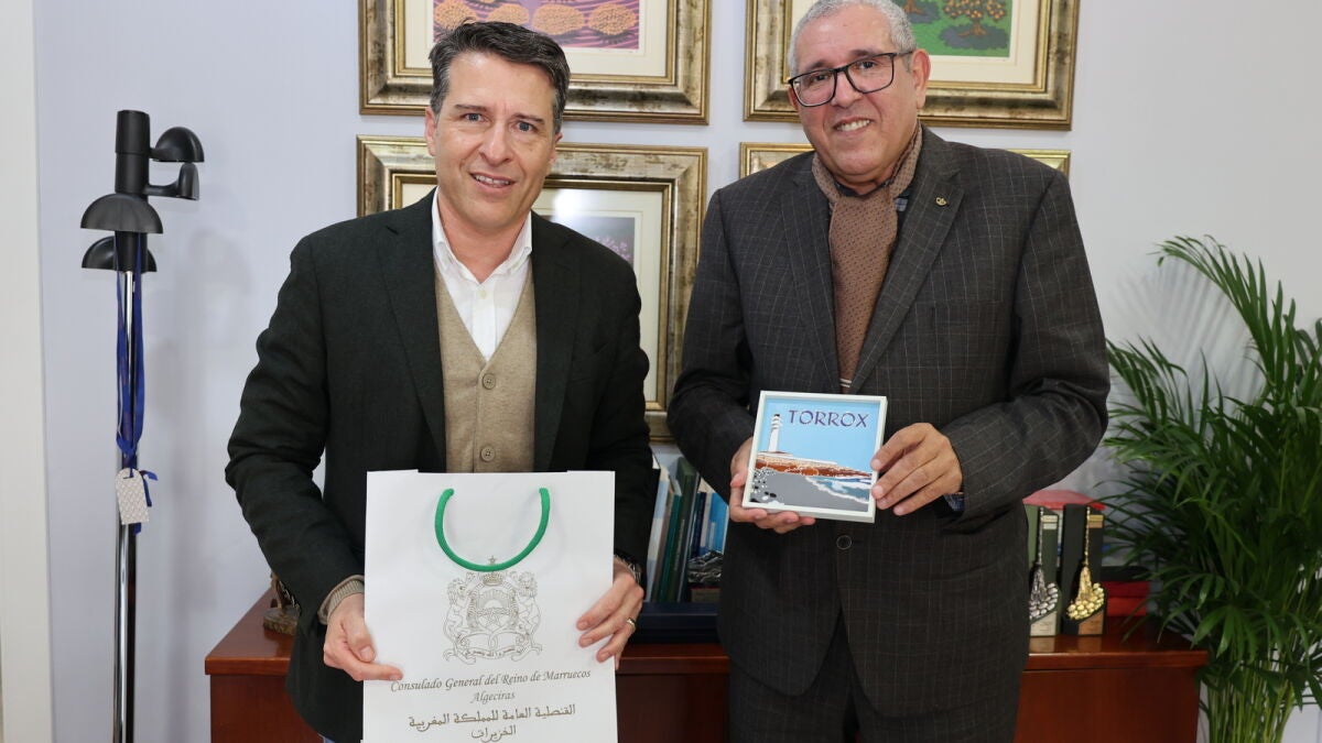 El cónsul general y el alcalde han mantenido durante su encuentro una extensa conversación en la que, entre otros asuntos, han abordado aspectos relacionados con la economía, la cultura y la forma de vida de Marruecos y España, así como los valores y elementos que ambos países tienen en común. Tanto Abdellah Bedoud como Óscar Medina, tras el intercambio de recuerdos protocolarios, han mostrado su disposición a abrir nuevas vías de colaboración y de realización de actividades conjuntas tanto en Torrox como en el país africano. “Torrox es un municipio diverso y abierto, y encuentros así reflejan el compromiso compartido de fortalecer la convivencia y el respeto entre todas las comunidades que forman parte de nuestra sociedad”, ha finalizado Medina
