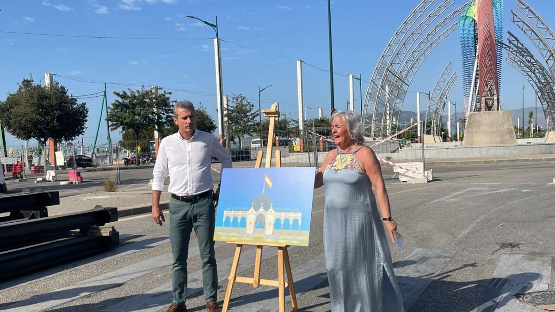 El Ayuntamiento de Málaga informa acerca del Real de la feria que contará con una nueva portada que recrea el 'Quiosco del Embarcadero de la Reina' construido para recibir a la reina Isabel II en su visita a Málaga en el año 1862. Tendrá 29 metros de alto y 145.000 puntos de luz.
