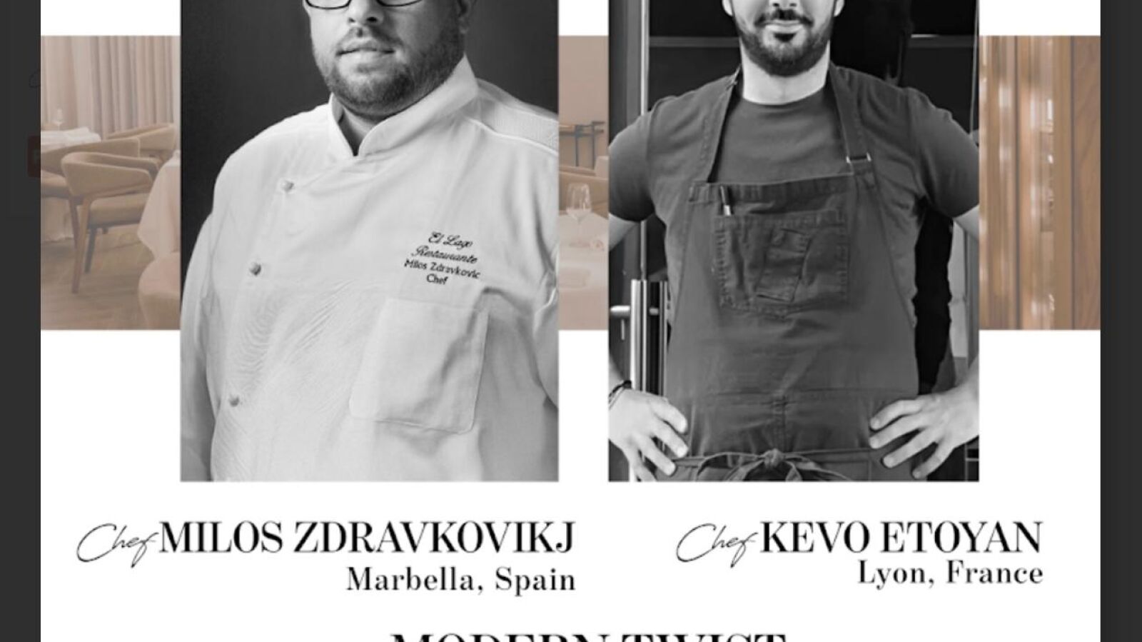 Kevo Etoyan Nacido y criado en Beirut, Kevo se formó junto a chefs de renombre y ha cocinado alrededor del mundo, perfeccionando un estilo artístico, instintivo y contemporáneo. Hoy dirige ECCENTRICO KITCHEN en Lyon, Francia, donde combina sus raíces mediterráneas con innovación y técnicas modernas, creando platos expresivos, meticulosamente presentados y llenos de personalidad.