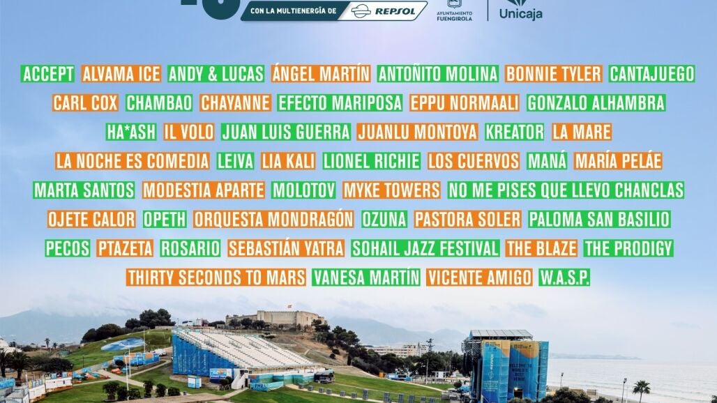 Para celebrar estos diez años de música, Marenostrum Fuengirola afronta su edición más ambiciosa hasta la fecha. Además, el cartel reunirá a más de 100 artistas y bandas, entre los que se encuentran Maná, Leiva, Myke Towers, Chayanne, Ozuna, Thirty Seconds to Mars, Antoñito Molina, Lionel Richie, Bonnie Tyler, Pecos, Sebastián Yatra, entre otros.