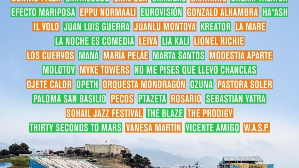 Para celebrar estos diez años de música, Marenostrum Fuengirola afronta su edición más ambiciosa hasta la fecha. El cartel reunirá a más de 100 artistas y bandas, entre los que se encuentran Maná, Leiva, Myke Towers, Chayanne, Ozuna, Dream Theater, Antoñito Molina, Lionel Richie, Bonnie Tyler, Vicente Amigo, Sebastián Yatra o Juan Luis Guerra, entre otros.