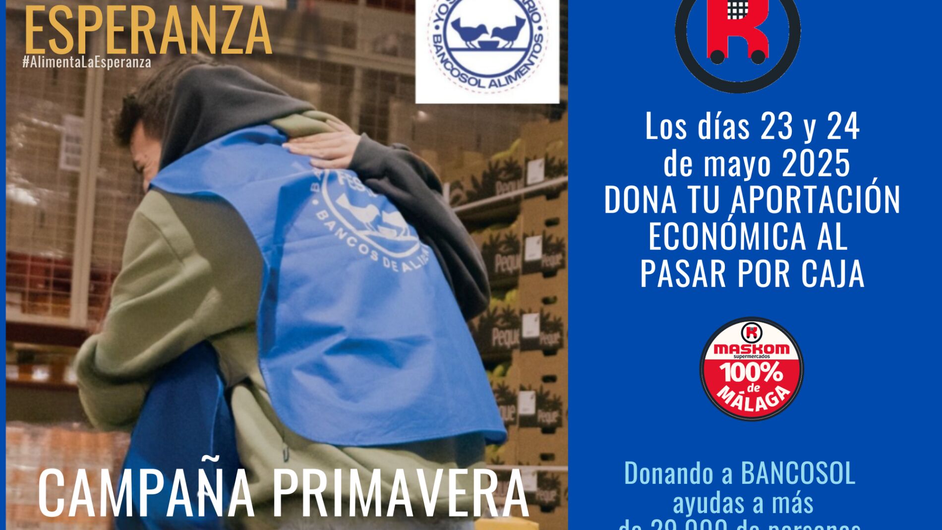 Un año más, Maskom Supermercados reafirma su compromiso con la comunidad malagueña sumándose a la Campaña de Primavera organizada por el Banco de Alimentos de la Costa del Sol (Bancosol).