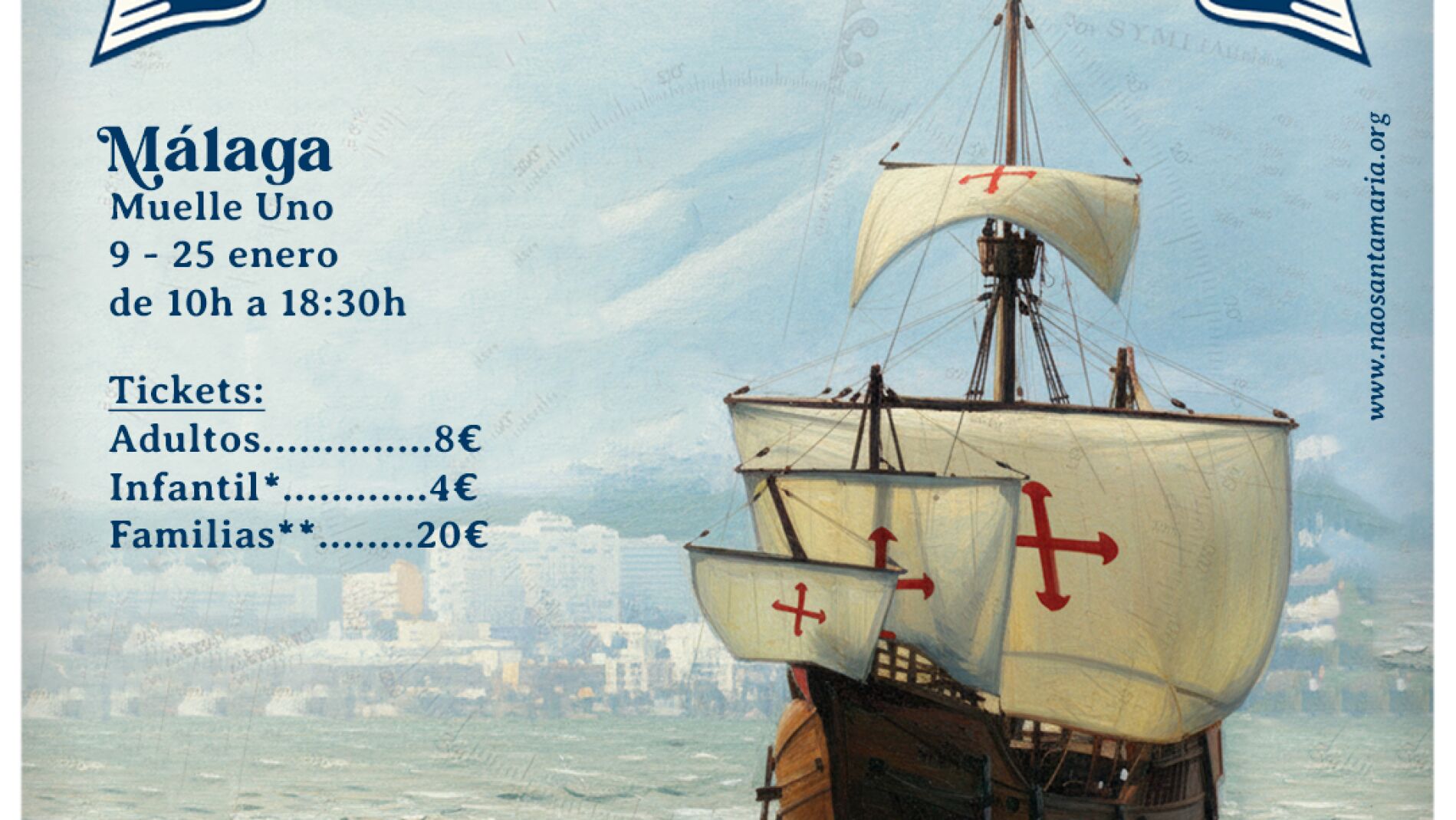 La Nao Santa María visitará próximamente Málaga y atracará en Muelle 1, IGY Málaga Marina. Los visitantes podrán descubrir cómo era la vida a bordo de la réplica que unió dos mundos: el descubrimiento de América a manos de Cristóbal Colón. Con 3 cubiertas accesibles al público, la Nao Santa María se convierte en un museo flotante que transporta a sus visitantes a la época de los grandes navegantes. Este año la Nao Santa María participará en una gran gira por UK y diferentes puertos de Europa. ¡Será tu última oportunidad para subir a bordo! Solo durante los días 9 al 25 de enero en horario de 10:00H a 18:30 de manera ininterrumpida.