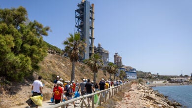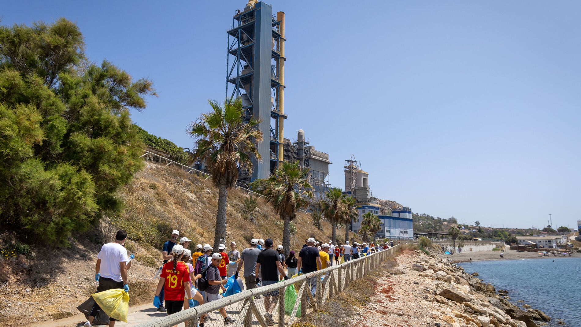 Trabajadores y trabajadoras de la fábrica de Málaga de Votorantim Cimentos y alumnos y alumnas de 5º y 6º de Primaria del Platero Green School se han unido para llevar a cabo una acción de voluntariado organizada por la compañía: la limpieza de la playa Peñón del Cuervo.