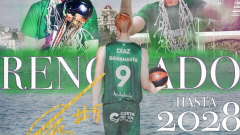 El Unicaja y Alberto Díaz han cerrado un acuerdo por el que el capitán continuará en Málaga hasta junio de 2028. A sus 29 años puede presumir de formar parte del Unicaja desde sus inicios, habiendo pasado por todos los equipos de cantera hasta su debut con el primer equipo, el 26 de abril de 2012 con 18 años y 3 días. Tras un paréntesis por las cesiones a Bilbao Basket y Fuenlabrada, el base se reincorporó en el curso 2015-16, por lo que ahora afrontará su 9ª temporada consecutiva en el conjunto malagueño.